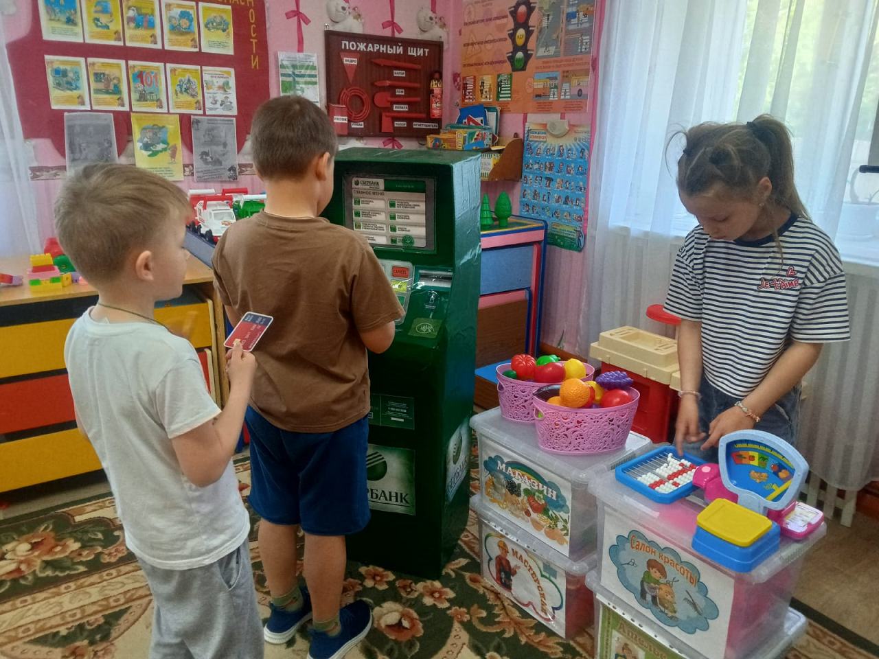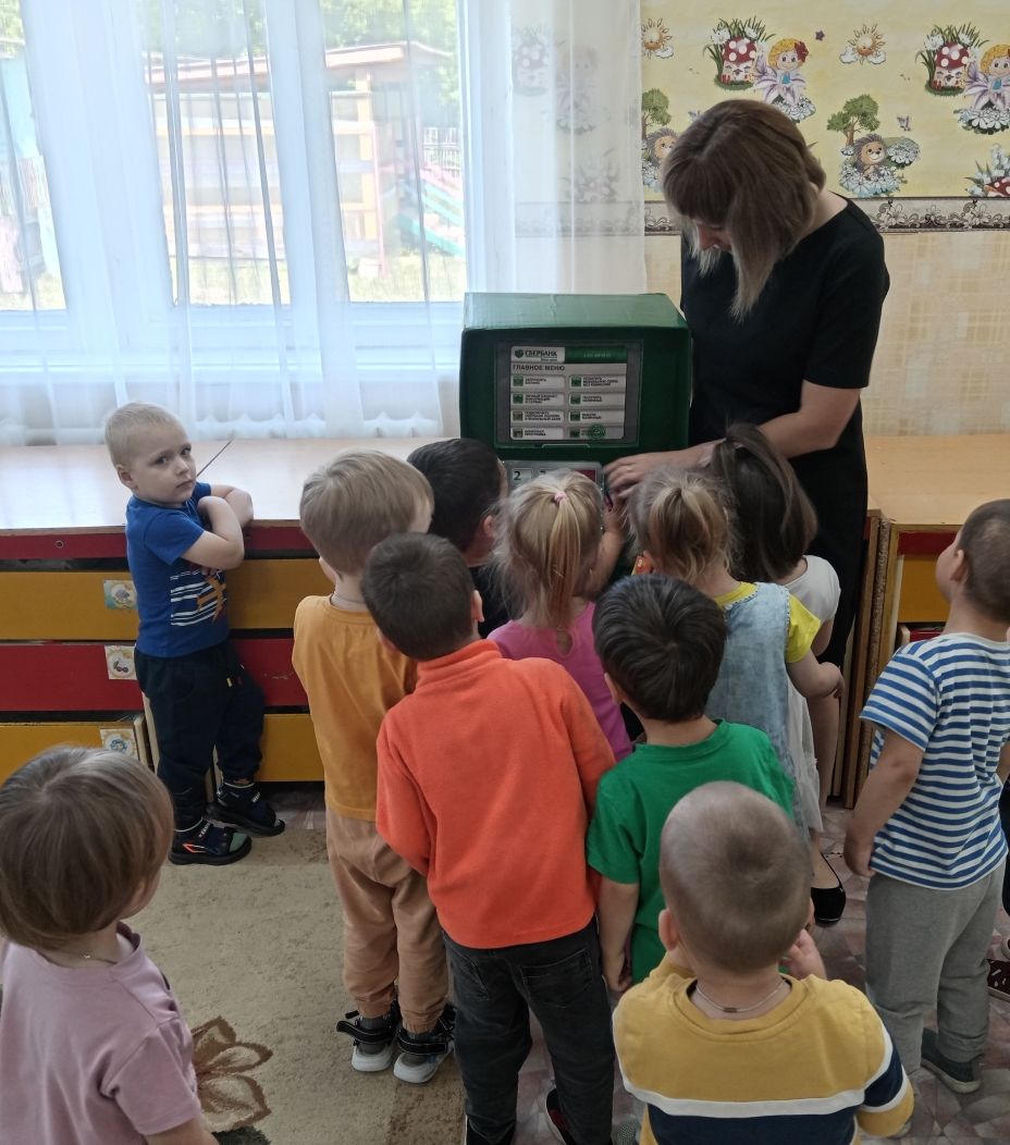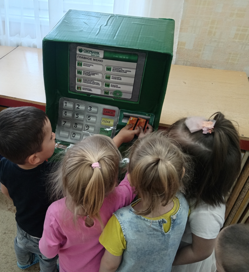 23 мая для детей 3-7 лет была проведена сюжетно-ролевая игра "Банкомат". Цель игры: знакомство детей с банкоматом, как аппаратом выдачи и хранения денег. Игра "Банкомат" максимально приближена к реальной жизни взрослых и учит дошкольников: взаимодействию друг с другом и со взрослыми в разных игровых и реальных экономических ситуациях.