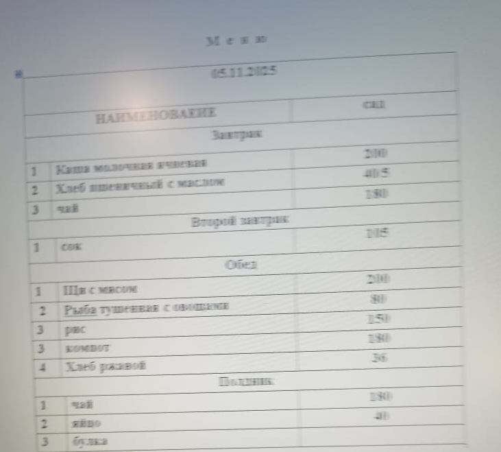 ЕЖЕДНЕВНОЕ МЕНЮ